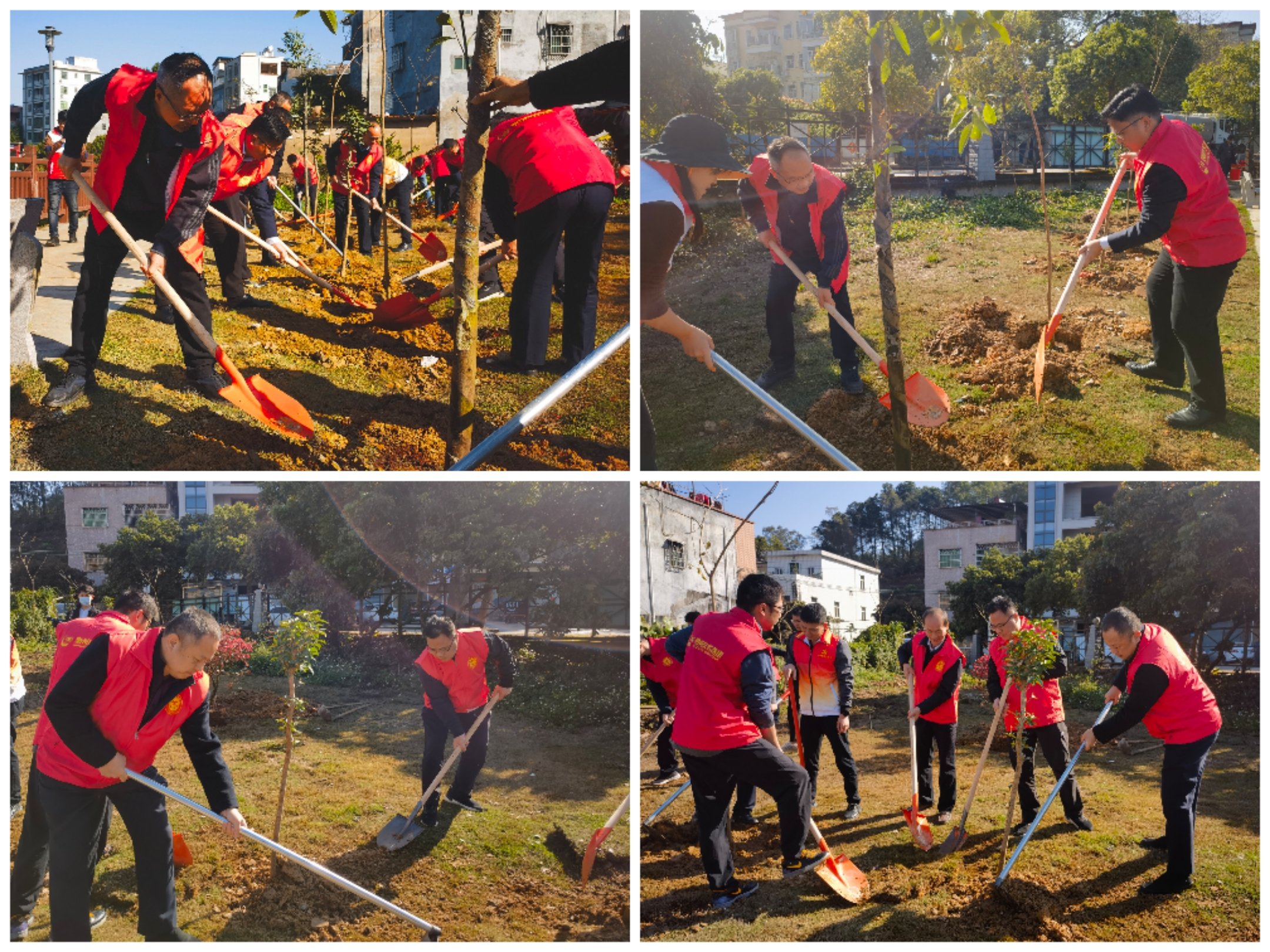 在植樹點上,黨員同志們身著紅馬甲,分工明確,干勁十足,精心細致栽種每一棵樹苗,共同為鄉(xiāng)村增綠添彩,以實際行動踐行新時代“綠水青山就是金山銀山”理念。