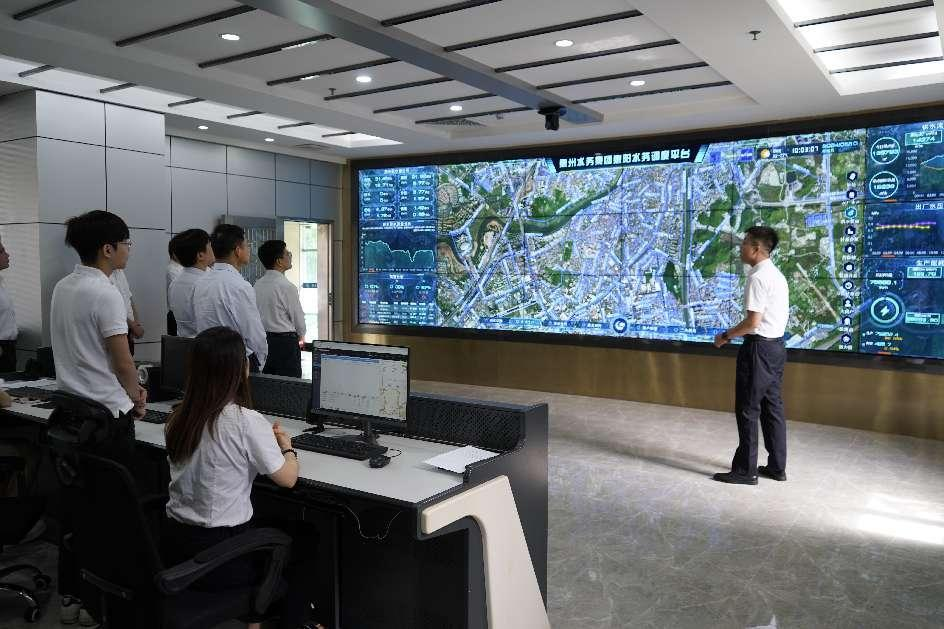 陳勉彬一行首先到惠陽水務供水調度中心,詳細了解管網GIS系統(tǒng)、SGADA、智慧消火栓及二次供水泵房監(jiān)控系統(tǒng)等智慧水務建設工作,聽取公司供水產能、供水范圍、網格化管理、重點企業(yè)用水保障及供水設施工程建設等情況。隨后召開座談會,會上,惠陽水務公司黨委書記、董事長李火根匯報了公司生產經營情況及2024年工作思路等。