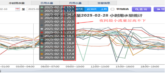 位于三環(huán)南路的 TCL 翠園小區(qū),水壓不穩(wěn)的情況時(shí)有發(fā)生。我司通過(guò)分區(qū)計(jì)量系統(tǒng)與營(yíng)銷(xiāo)系統(tǒng)的比對(duì)分析,發(fā)現(xiàn)該小區(qū)夜間最小流量異常偏高,初步判定存在物理漏損。