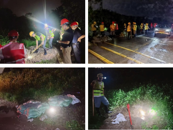 緊急響應(yīng),科學(xué)研判險(xiǎn)情。6日下午17點(diǎn)45分,公司接到市三防指揮部要求前往潼湖處置管涌險(xiǎn)情的指令,公司主要領(lǐng)導(dǎo)高度重視,立即安排2名技術(shù)骨干趕往現(xiàn)場,與仲愷農(nóng)工局專家聯(lián)合勘查,研判管涌成因及危害程度,制定搶險(xiǎn)方案。18點(diǎn)50分,公司由副總經(jīng)理劉志輝、搶險(xiǎn)分隊(duì)隊(duì)長李雪川帶隊(duì),運(yùn)送編織袋、救生衣等搶險(xiǎn)物資趕到搶險(xiǎn)點(diǎn)。