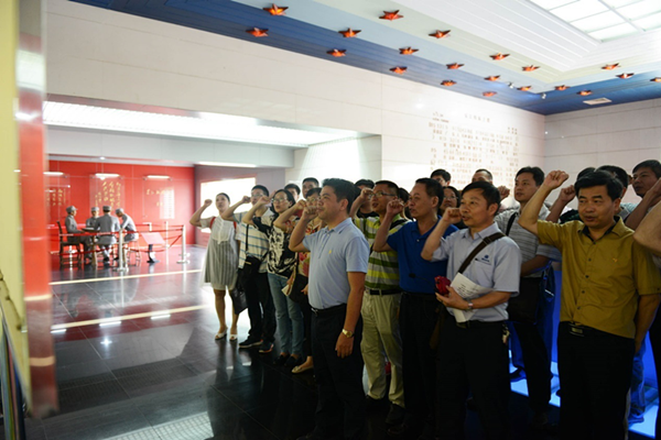 通過紀(jì)念館工作人員的講解,市水電公司黨員同志們了解了東江革命縱隊(duì)如何在當(dāng)時(shí)艱苦卓絕的條件下逐漸發(fā)展壯大,如何在只有“小米加步槍”的情況下取得一次又一次戰(zhàn)斗的勝利,如何成功營(yíng)救出被困在香港的七百余名愛國(guó)民主人士,完成了不可能完成的任務(wù)。全體黨員都深刻體會(huì)到了革命先烈們百折不撓、不怕犧牲的英勇精神。參觀結(jié)束后,由張偉南同志代表黨員重讀“入黨申請(qǐng)”,并在鄭海強(qiáng)書記帶領(lǐng)下重溫入黨誓詞,再一次感受宣誓時(shí)莊嚴(yán)的氛圍。