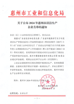 根據(jù)最新公布的2024年惠州市清潔生產(chǎn)企業(yè)名單,惠州水務(wù)集團(tuán)碧源環(huán)境科技有限公司所屬污泥企業(yè)惠州民亨環(huán)??萍加邢薰卷樌ㄟ^評估驗收。