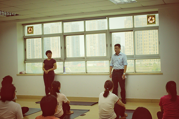 為辦好這次活動 ,公司特邀曾冬梅老師來進行輔導,曾老師練習瑜伽12年,執(zhí)教6年,獲得了全美聯(lián)盟RYT200教師培訓證書。這次開班共有24名女職工參加,平均年齡35歲,最大51歲。