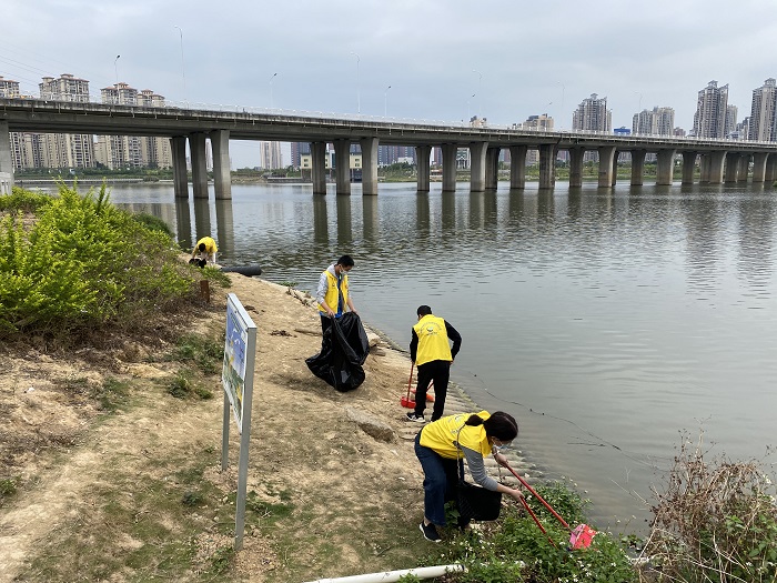 活動(dòng)現(xiàn)場(chǎng),志愿者們拿著環(huán)保清潔袋,用工具將路堤兩邊草叢里塑料袋、紙團(tuán)、煙頭等生活垃圾進(jìn)行了徹底清理,并清掃了地面上的枯枝落葉和果皮紙屑。